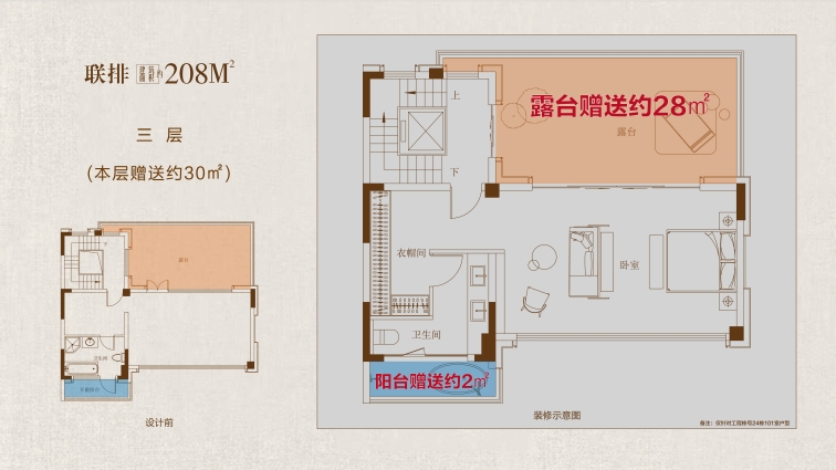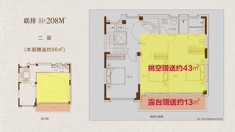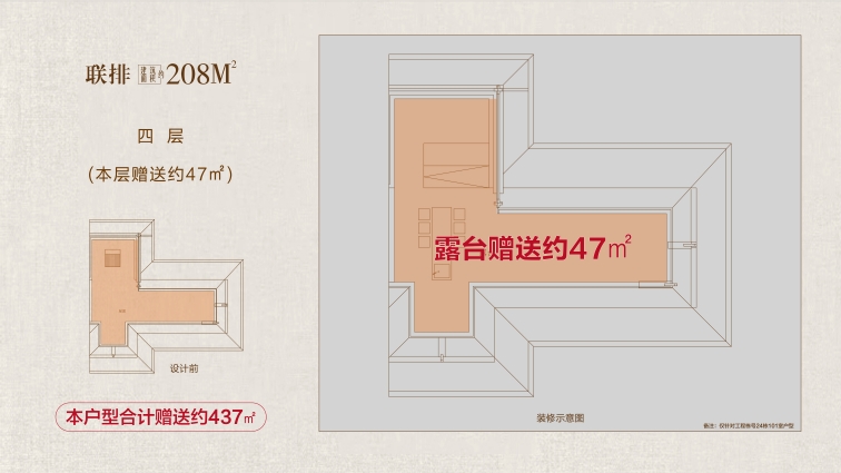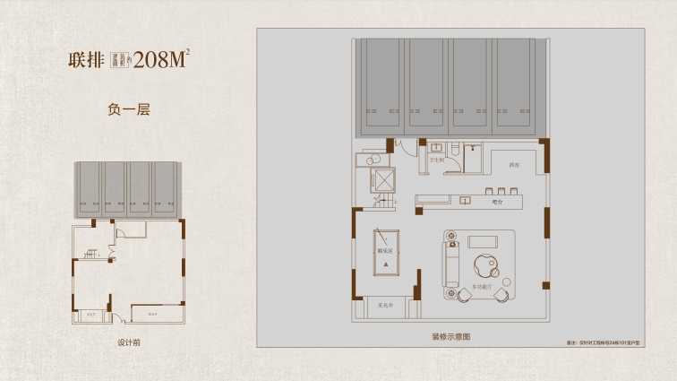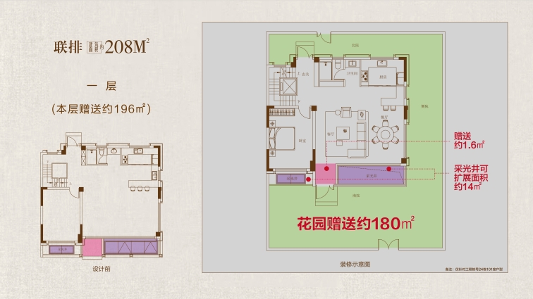 208戶型鑒賞: 大花園:戶均擁有約120㎡以上私屬庭院,可打造花園、茶室或親子活動(dòng)空間,延伸生活詩(shī)意 三開間:約10.7米南向面寬,首層層高約3.6 米,采光通風(fēng)俱佳,營(yíng)造朗闊起居格局。 高附贈(zèng):地下室面積約108㎡,約 5.5 米挑高,可隔成兩層,打造影音室、健身房、酒窖等多元功能區(qū);一層餐客廳挑空,可拓展約43㎡贈(zèng)送空間;二層、三層配備景觀露臺(tái),陽(yáng)臺(tái)半贈(zèng)送;四層星空露臺(tái)全贈(zèng)送,解鎖生活多重想象。